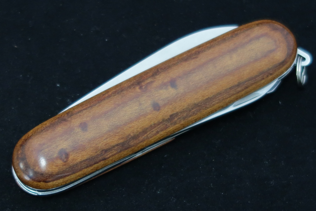 [スペック/ SPEC] 〈全長/Full Length〉156mm 〈刃長/Blade Length〉67mm 〈刃厚/Thickness〉1.8mm 〈本体重量/Weight〉164g 〈鋼種/Steel〉ステンレス特殊鋼 Stainless Special Steel 〈柄/Handle〉ハードウッド Hard Wood 〈姿/Shape〉メインブレードmain blade、栓抜きbottle opener、缶切りcan opener、+ドライバー cross slot screwdriver、キリawl 箱無し No Box |