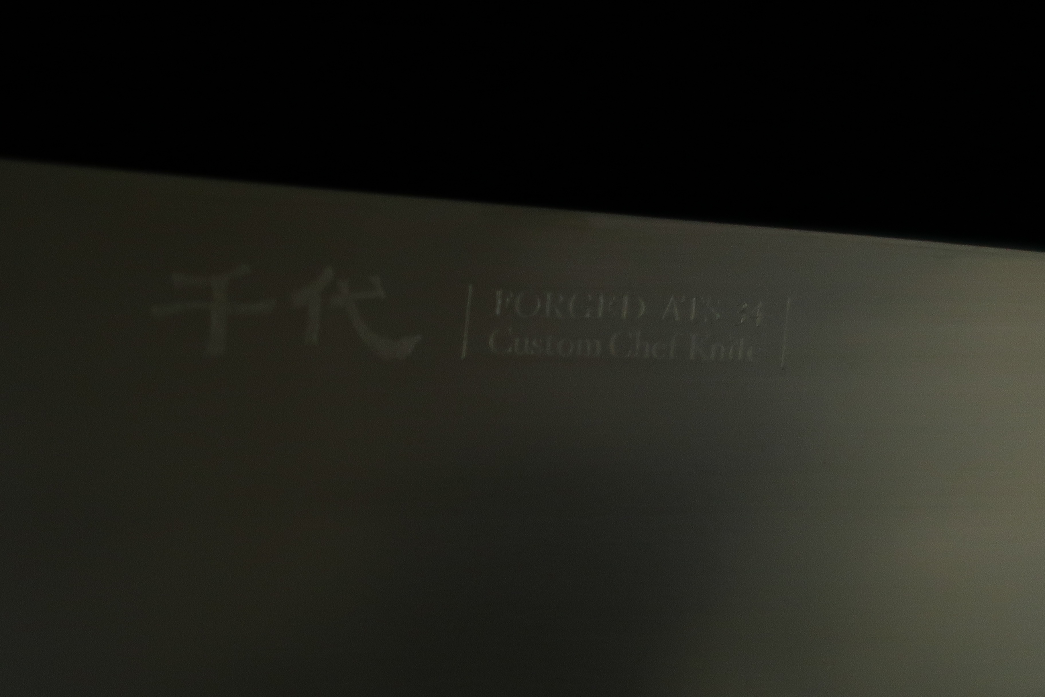 | はらこうじさく ATS-34たんぞうかすたむほうちょう 原 幸治作 ATS-34鍛造カスタム包丁 180㎜ Koji HARA Custom Gyuto Chiyo Forged ATS-34 180㎜ Full tong Blade |