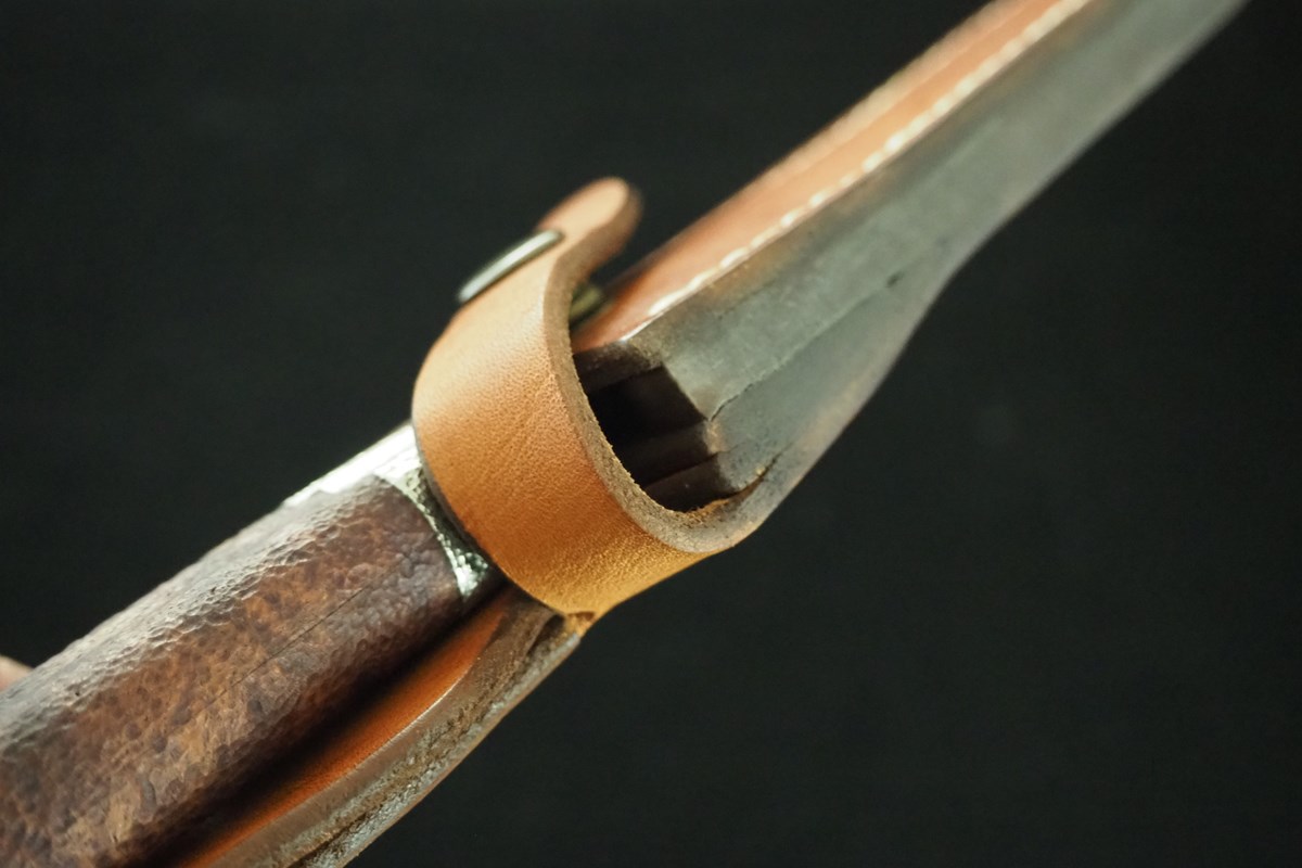 [スペック/ SPEC] 〈刀匠・Swordsmith〉竹花 一貫斎繁久 Takehanaikkansai Shigehisa 〈全長/Full Length〉270mm 〈刃長/Blade Length〉150mm 〈刃厚/Thickness〉6.5mm 〈本体重量/Weight〉257g 〈鋼種/Steel〉玉鋼 Tamahagane 〈柄/Handle〉鉄刀木 Ironwood 〈地肌/Texture〉小板目 ko-itame 〈刃紋/Hamon〉互の目乱れ(Gunome-Midare) 〈口金/Bolster〉洋白(Nickel Silver)にタガネ毛彫り (Hair carved with Chisel) 〈鞘/Sheath〉高級牛ヌメ皮手縫いシース(Leather hand-sewn) 〈その他/others〉国産品(Made In Japan) |