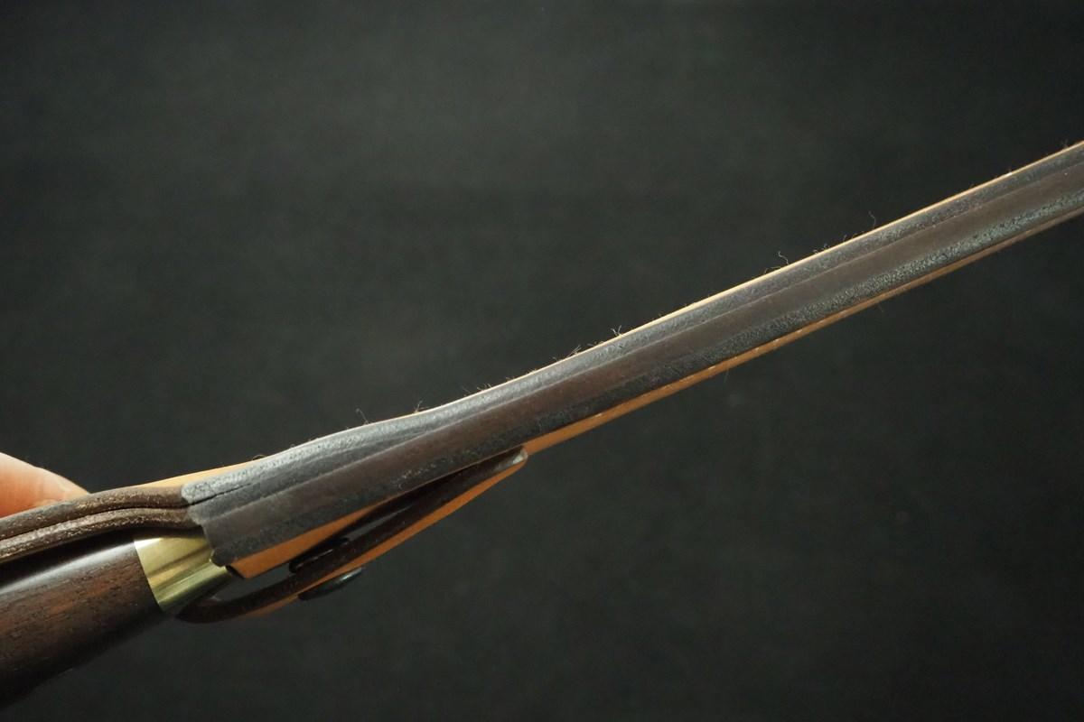 仕掛品を完成させました。ハンドルとシースは、有名ナイフメーカーが担当したカスタムメイドとなります。 現在、佐治氏は和式ナイフの製造を中止しています。 |