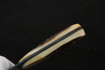[スペック/ SPEC] 〈全長/Full Length〉約175㎜ 〈刃長/Blade Length〉約85㎜ 〈刃厚/Thickness〉約3.3㎜ 〈本体重量/Weight〉115g 〈柄/Handle〉スタグ・うるし仕上げ 〈鋼種/steel〉日立安来鋼青紙2号(Blue#2) 〈ケース/case〉特製牛皮ケース 〈その他/other〉ハンドルにヒビあり。(修復済みです) |
